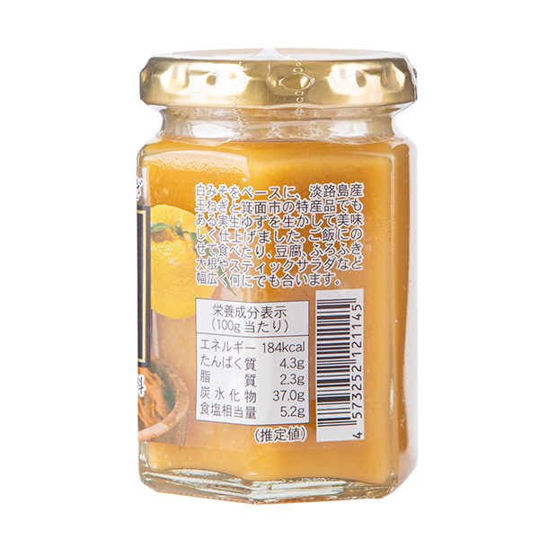 原材料名:みそ(国内製造・砂糖・玉ねぎ(淡路島産)・清酒・昆布だし・ゆず皮(箕面市産)・食塩・醸造酢・鰹節粉末